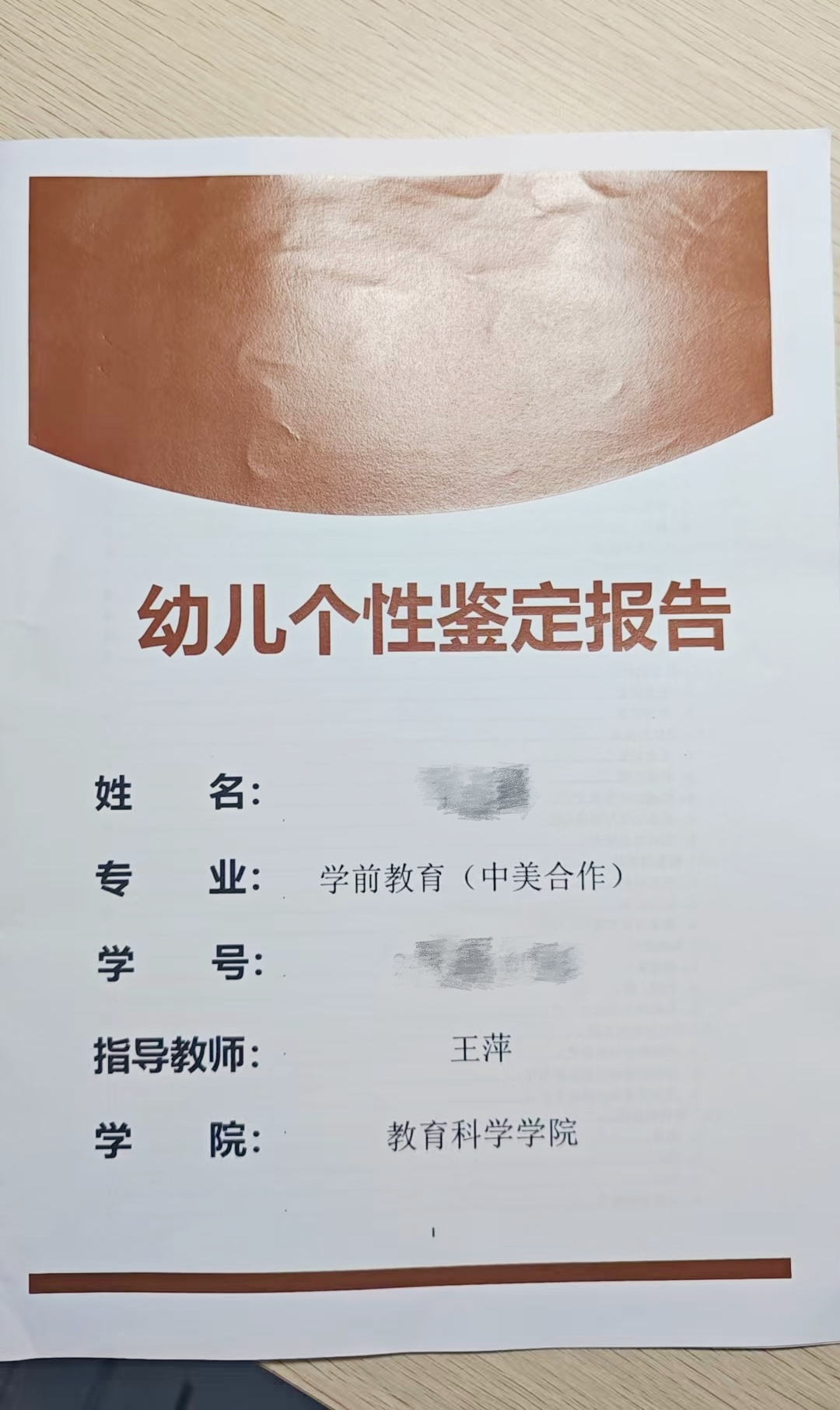 值得一提的是,作为本次见习活动的重要理论成果,2024级学前中美班的全体同学在见习结束后,均用心地撰写了一篇详实的《幼儿个性鉴定报告》。这份报告,正是他们运用所学知识,结合实践经历,对特定幼儿进行的系统分析与专业评估。每一份报告都凝聚着同学们的观察智慧、理论思考与对幼儿个体的深切关注,标志着他们初步具备了运用专业知识解读幼儿、理解幼儿的专业能力,是见习成果从感性体验迈向理性分析的重要里程碑。