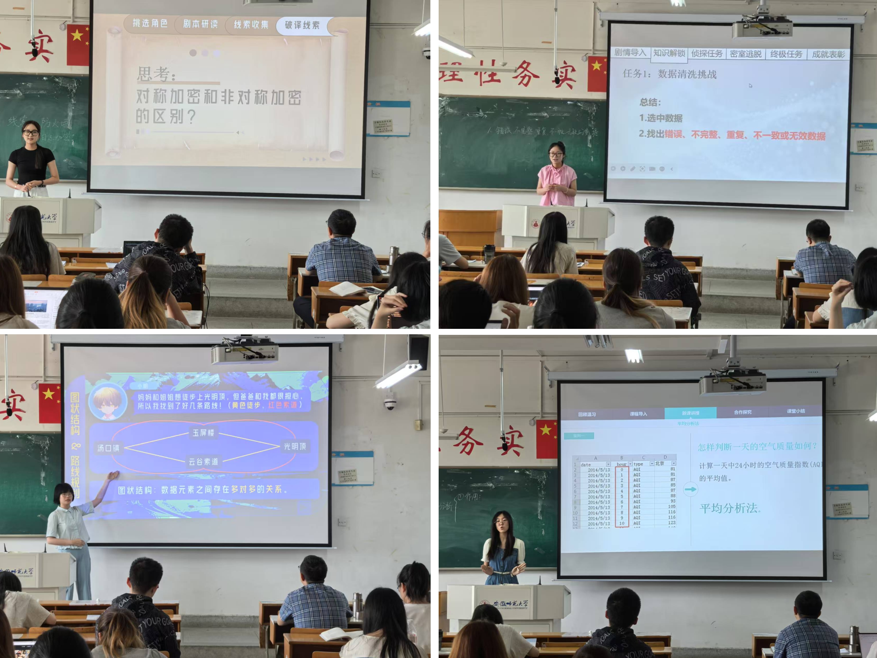 前期,经过多轮严谨的作品筛选与评定,白梦琪、朱悦、陈悠然、朱点惠、陈鑫、江淼、徐天琪七位同学凭借出色的教学设计,从众多参赛者中脱颖而出,获得此次珍贵的展演机会。展演现场,七位同学按照学号有序登场,开展无生授课。他们或巧用多媒体资源创设情境,或结合生活实例启发思维,每一个教学设计都充满巧思,教学环节层层递进、衔接自然。在规定时间内,将精心打磨的课程完美呈现,充分彰显了扎实的专业功底良好的教学素养。