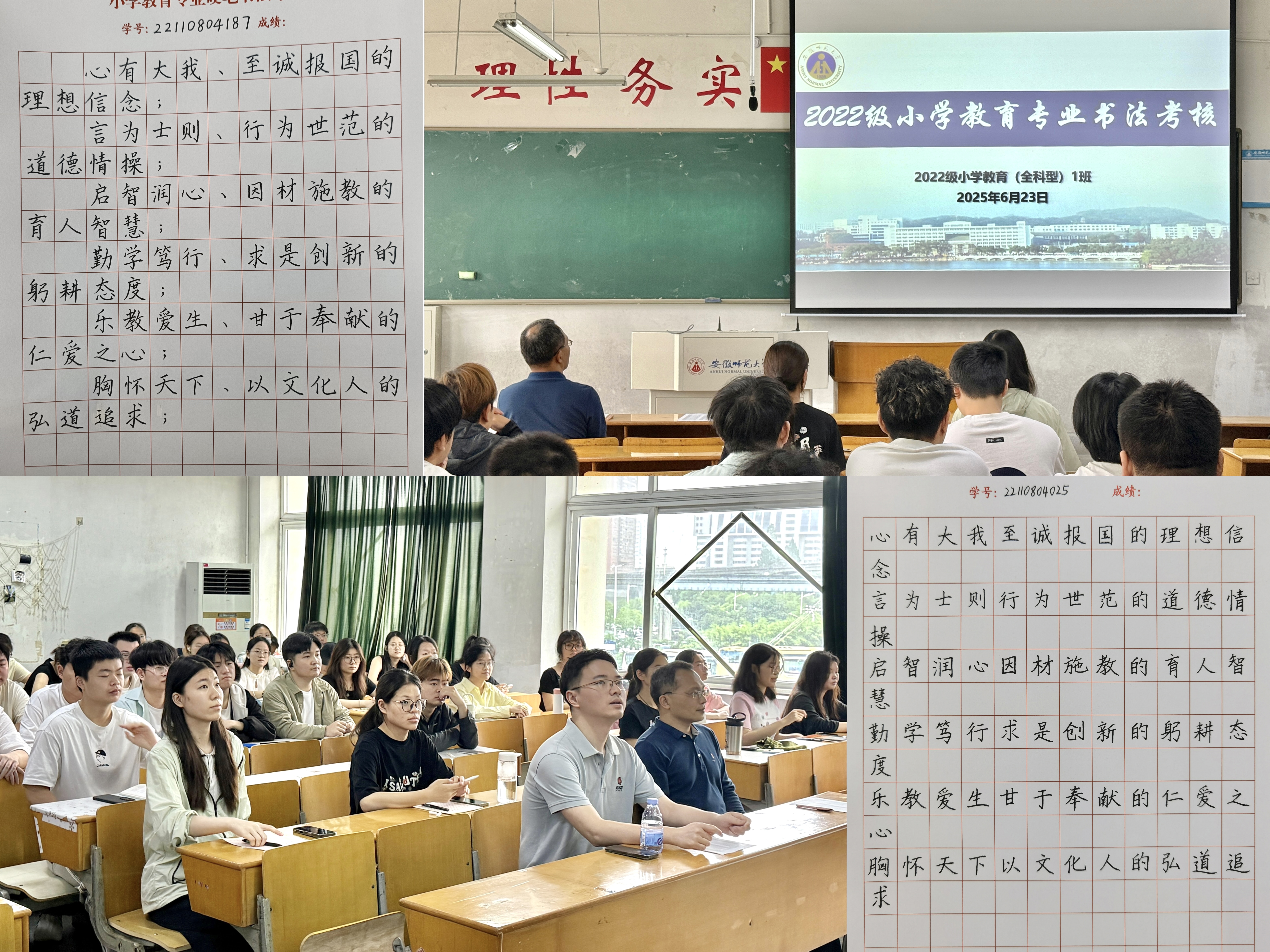 2025年6月23日上午9时,2022级小学教育(全科型)专业书法考核在公司顺利开展。本次考核评委由专业负责人王芳及班主任老师组成,对全体员工的硬笔书法和粉笔字进行综合评定。