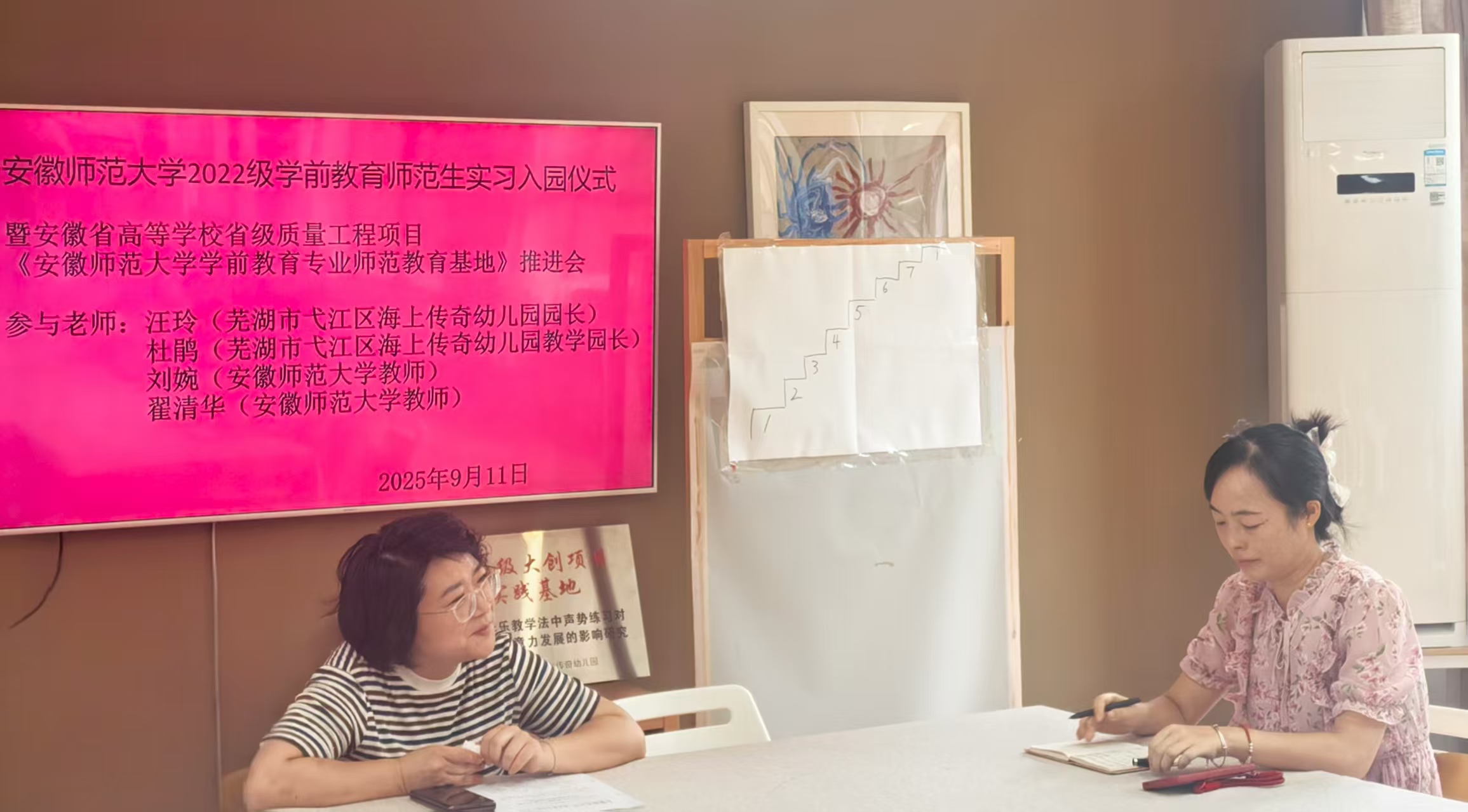 2025年9月11日上午,TapTap点点2022级学前教育专业8名同学,赴芜湖市弋江区海上传奇幼儿园开展为期16周的教育实习。海上传奇幼儿园园长汪玲、教学园长杜娟,TapTap点点带队教师刘婉、翟清华共同出席实习入园仪式。