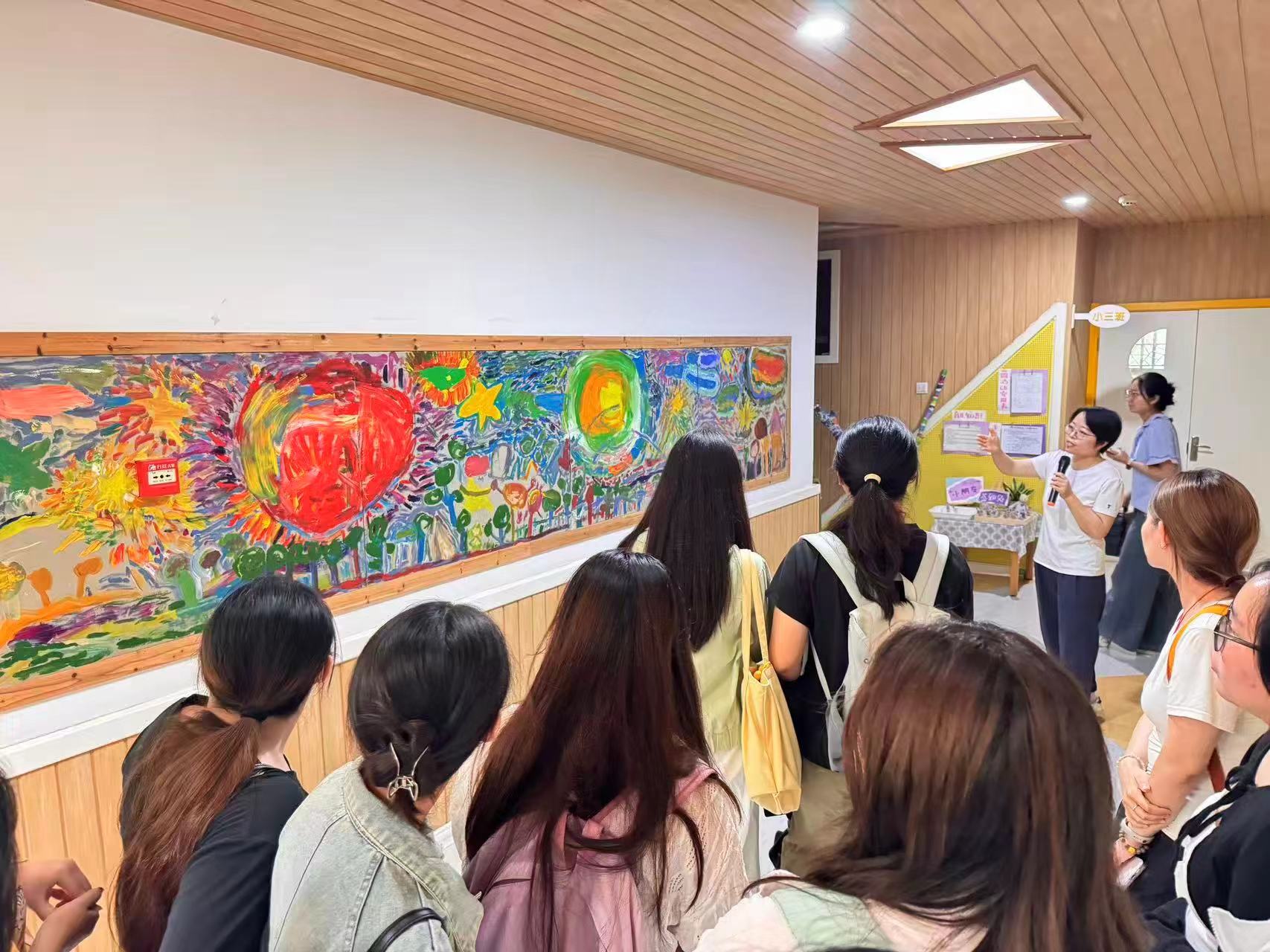 在实践观摩的基础上,幼儿园还特别安排杨瑞风、苏兰华老师分别带领同学们分组深入参观园区环境。两位老师从室内各功能区域的创设思路,到室外活动空间的规划理念,进行了全面细致的讲解。她们强调,幼儿园环境创设始终以幼儿兴趣为出发点,紧密结合教育目标,同时高度重视安全性、互动性与层次性,力求让园区的每一处空间都能成为激发幼儿探索欲望、助力其全面发展的“第三位老师”。