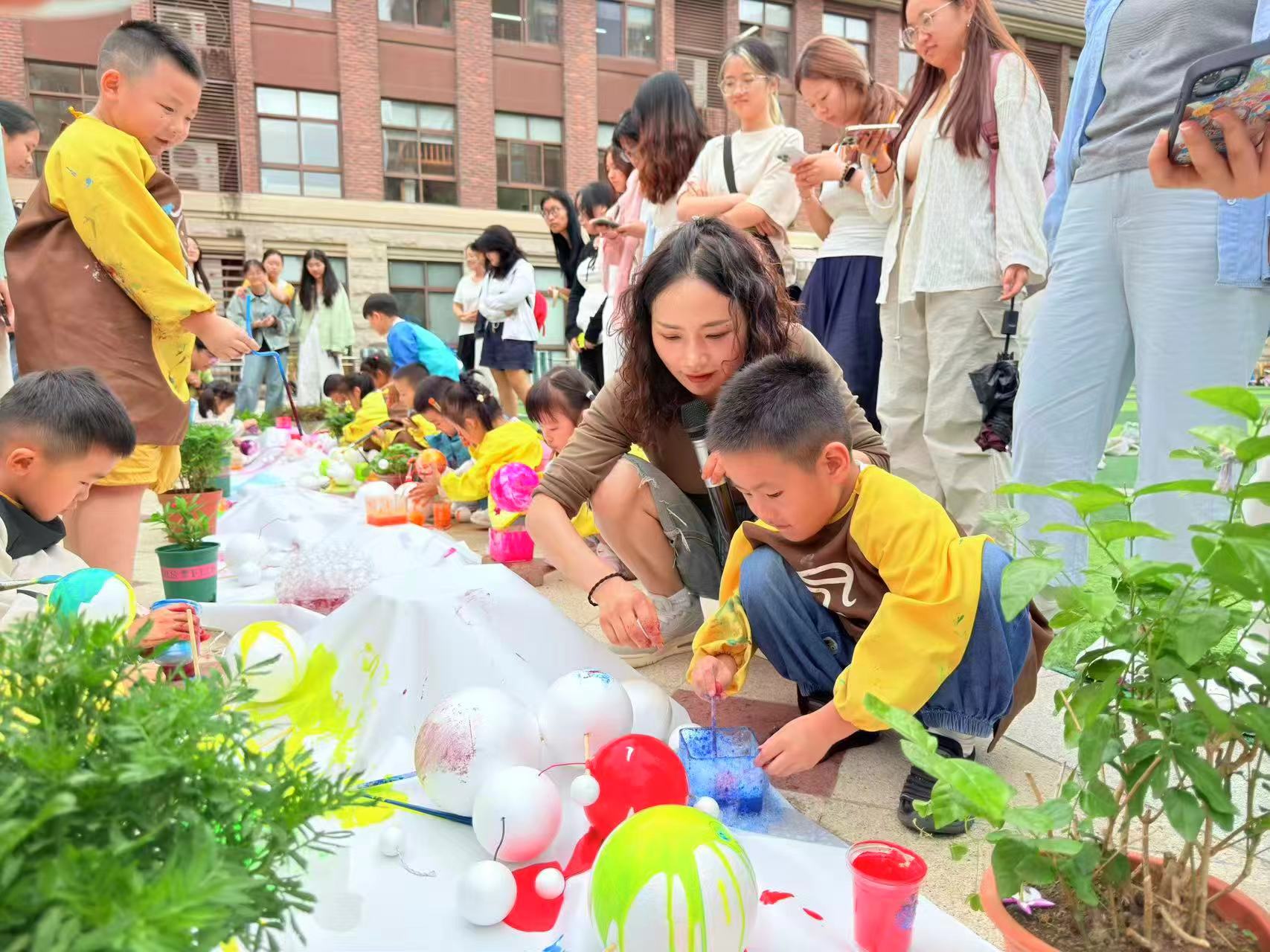 观摩结束后,先观摩了由吕琪老师执教的大班科学活动《“枝”有力量》。课堂上,吕老师以树枝为教学道具,巧妙引导幼儿逐步探索古人远距离搭桥的奥秘,将抽象的科学原理转化为生动有趣的探索过程,充分展现了幼儿科学教育的趣味性与探究性,让在场同学们深受启发。之后观摩韦玉婷老师带领中班幼儿开展的美术活动《吹泡泡》。活动中,韦老师以趣味化的方式巧妙引导,让孩子们化身 “小小艺术家”,通过吹一吹、刷一刷、倒一倒等充满童趣的操作,亲身探索泡沫球上色的奥秘。在这一过程中,孩子们直观感知到颜料叠加、晕染所产生的奇妙效果,也逐渐明白“吹泡泡玩色”能让颜料以随机又轻盈的姿态附着在圆球表面,进而认识到“圆”与色彩碰撞融合后独特的视觉特点。整场活动在轻松愉悦的氛围中展开,不仅让孩子们体验了创作的快乐,更有效培养了他们的观察力与想象力 。