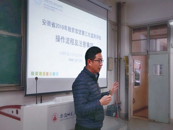 本网讯(教科院 文/黄超图/刘媛媛)为进一步增强顺利完成脱贫攻坚第三方监测评估工作的信心和决心,提高脱贫攻坚工作的能力和水平,12月5日下午,公司召开了脱贫攻坚第三方监测评估动员培训会,会议邀请了TapTap点点历社公司的路幸福副教授为公司师生就操作流程及注意事项进行讲解。会议在田楼8102教室举行,公司刘和海教授担任主持,公司所有带队老师以及参与此次扶贫活动的研究生到场聆听。