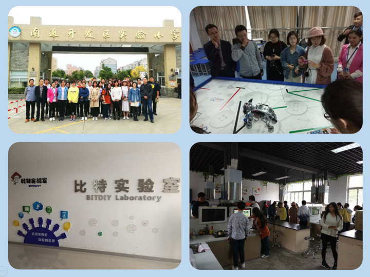 下午,全体师生参观了南通市开发区实验小学,并在实验小公司领导和老师的带领下,对智能厨房、智能机器人、乐高积木、虚拟现实、3D打印/拓印等多个特色教室和实验室进行了实地观摩。同学们一边亲自动手做、动手玩,一边向各教室的实验指导教师请教教学内容和实验项目如何开展,深刻感受到:如今小学的STEM教学和信息技术支持下的实验课程,对教育技术毕业生的个人学习和教学能力提出了更高的要求,在开阔了眼界的同时,也增强了自身的学习动力。