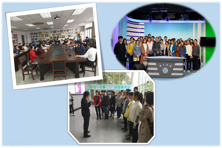 博物馆参观结束后,全体师生前往第二站南通大学主校区现代教育技术中心参观。中心书记丁卫泽教授为师生详细介绍了中心的基本情况和南通大学信息化建设工作进展,并就相关的信息化技术和管理岗位对教育技术专业毕业生的要求做了阐述。随后,同学们参观了南通大公司园电视台,了解了电视台的功能、运作方式和人员组织。午饭后,全体师生与南通大学的教育技术专业研究生导师团队进行了深入座谈,同学们就自身对于专业的困惑提出问题,导师们耐心的予以指导和解答,并对同学们提出的关于专业学习和未来职业生涯相关的问题提出了诚恳的建议。