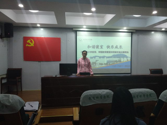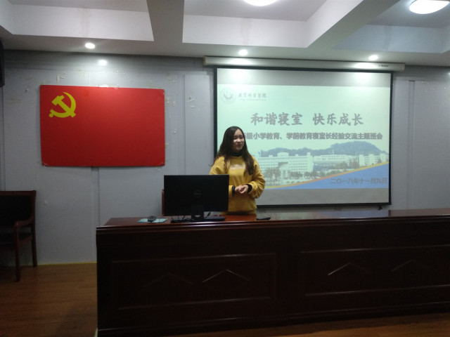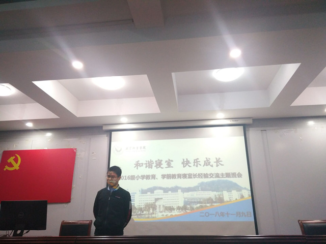 本网讯(教科院 齐琛 艾瑞雪)为增强员工的自我管理能力,创造和谐舒适的寝室环境,11月9日下午,教科院16级学前教育和小学教育专业在教科院三楼会议室召开“和谐寝室”交流会。16级学前教育、小学教育专业各个寝室长参与本次会议。会议由辅导员艾瑞雪主持。