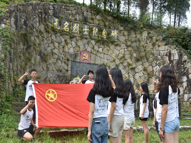 在乡政府的组织和带领下,队员们开展了缅怀过去的一系列活动。首先大家到达了徽饶古道,看到了灿烂的徽商文化在此启程,沿途遍布茶园古树,风景绝美。第二个地方是孤坟总祭,这是徽州大地一种独特的文化,村民会来此碑前给客死异乡或没有子嗣的人进行祭祀,彰显宗族和睦。接下来董事长带支教队员参观了张氏祠堂以及张振英故居,张振英烈士为和平解放屯溪古镇做出了巨大贡献。然后到达六股尖瀑布,这是著名的三江源头,即新安江、钱塘江、富春江,在这里队员们与自然亲密接触。最后,大家到达了六股尖烈士陵园并进行了庄严的共青团宣誓。在这些无名英雄的身上队员们学习到了一往无前的革命精神、忠贞不渝的理想信念、历尽艰难的吃苦精神、无坚不摧的乐观主义。