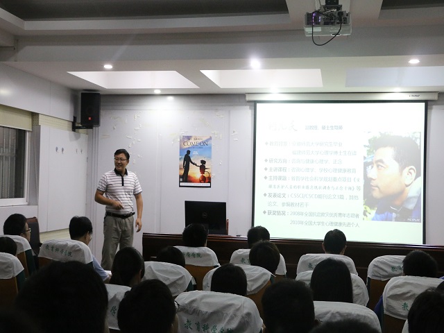 首先,王老师介绍了心理学系教师队伍基本情况,并详细介绍了心理学系专业课老师的负责课程、学业生涯以及学术方向。随后,经理桑青松教授对2018级心理学专业新生的加入表示了热切的欢迎和真挚的祝福。同时,桑经理针对2018级新生的学习和生活提出了四点建议,督促并勉励新生“找准自我定位、准确认识自我、转变学习方式、和谐人际关系”,切实关注未来专业的学业学习与发展。