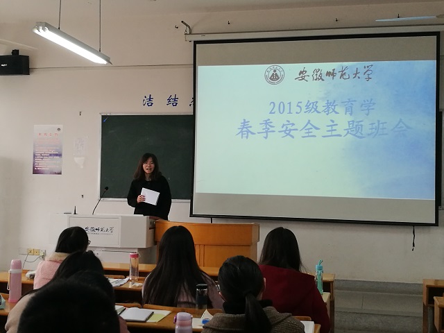 为了进一步落实安全教育,教科院各年级分别开展了相应的主题教育班会。17级辅导员谭茹轩老师于3月20日下午于教学楼1401开展了大一春季安全主题教育班会。谭老师就寝室安全问题,再次强调禁止违规电器的使用以及注意用电安全。随后就出行,兼职等情况,强调了大一新生们应时刻避免人身财产安全受到侵害。毕业班辅导员龚伟就毕业生的就业安全问题进行了详细的解说。与此同时,其他级各专业也就安全问题开展了相关主题班会,提醒同学们要提高安全意识,根据公司通知严格遵守规定以保障自身的安全。