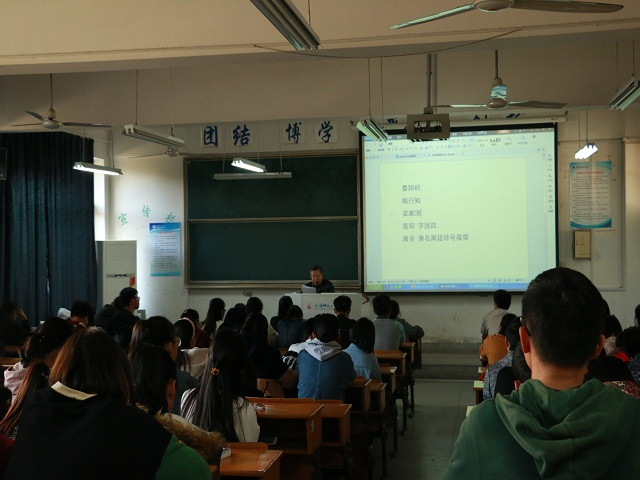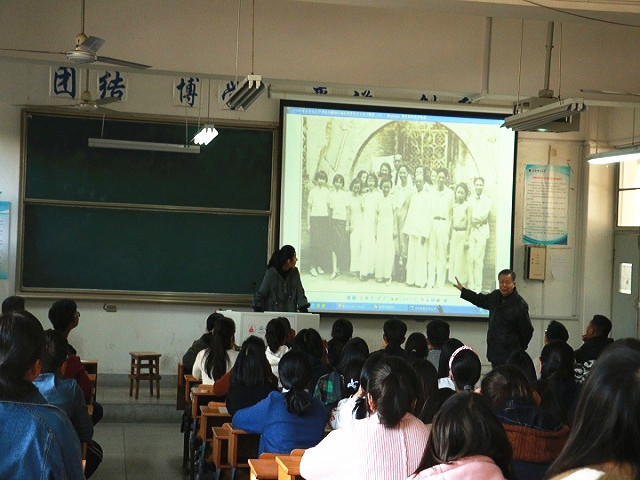 周商克老师首先向同学们展示了有关他父亲周辛教授当年创办和领导的乡村教育实验区等相关珍贵照片,图文并茂地讲述了周辛教授致力于乡村教育的点滴经历,并通过自己孙女的事例激励在座同学:“一个人的潜力是无穷的,我希望大家能充分发挥自己的潜能,创造属于自己的精彩人生”。