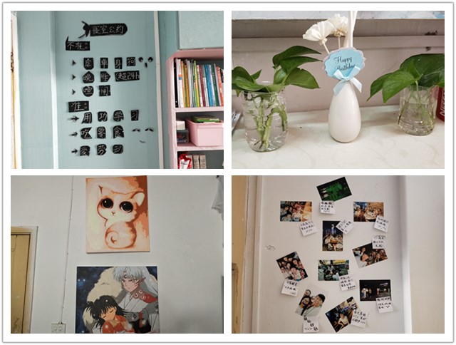 本次比赛倡导节约环保和个性特色,各个寝室风格不一,充分展现了同学们的创新能力和动手能力。参赛寝室相关人员详细的向评委们介绍了自己的设计理念,有的寝室温馨可爱,有的整洁大方,有的充满活力……每个寝室的设计都是融合了集体的智慧和劳动的,有亲手绘画的精美画作,有一起制作的寝室公约,还有充满温馨回忆的照片墙等。在追求美的同时同学们还坚持了环保精神,利用废旧物品进行改造,有的用喝完的饮料瓶制作了花瓶,有的废旧纸盒做成了收纳盒、门牌等,这些创意都体现了当代老员工的活力,也获得了评委们的好评。