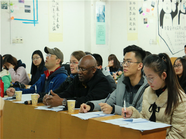 本网讯(教科院 张曼)为营造公司英语学习气氛,丰富校园文化,11月25日晚7点,公司第一届英语演讲比赛决赛在田家炳教学楼8408拉开帷幕。本次决赛评委由美国布莱诺大学教育公司经理Eugene教授,南京外国语公司 Mandy女士与Alex老师,员工会主席张照辉和员工会副主席马舒婷担任。