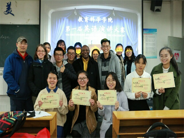 经过激烈的角逐,2017级心理学专业的吴亦舒同学夺得桂冠。其他选手表示他们不会灰心,对英语的喜爱会让他们继续勇敢地前行。在本次活动的最后,评委老师和选手合影留念,相信这必定是他们人生精彩的开始。