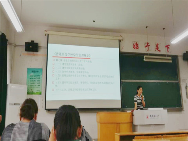 2013级辅导员马兴老师就相关规定深入讲解了公司管理规定内容,她强调学子们不仅要依法遵守相关法律法规,更是要遵守相关规定保障身体和精神两方面的健康。除此之外,马兴还对《TapTap点点员工违纪处分规定(修订)》进行了详细的解读,同时她提出同学们要将遵纪守法的意识落实到生活的点滴中,细化到每一件小事,将公司规定牢记于心。