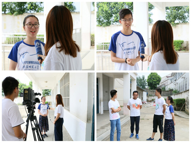 接受采访的两位团队成员分别是2015级应用心理学的张照辉和2015级教育学的张皓南。张照辉同学作为支教团队的队长,简要阐述了此次支教活动的目的和意义。今年是“全心全益”和县老员工村官暑期义务辅导活动进行的第五年,也是与教科院合作开展的第三年。该项活动累计辅导孩子800余人,帮助他们了解优良的学习方法、学习平时无法接触到的课外知识,也让孩子们拥有了一个快乐完整的暑假。他表示有必要也有责任将这个活动继续发扬光大,让更多的孩子接受帮助。张皓南同学则从细节入手,说明了此次支教活动的具体行程和课程安排,从个人角度阐明了自身的义务和责任,认为自己的行为能够给于这些孩子温暖和关爱。电视台的记者还随机采访了几个孩子,孩子们表示这次支教活动上的课和平时的课程有很大区别,课堂氛围更加轻松活泼,也能学到不少知识。当记者问及他们的梦想时,回答中包含着各种职业,但都无一例外地期望考上大学,体现出农村孩子对知识的渴望,以及知识对他们人生的影响。
