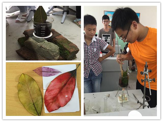 河图中心公司的实验设备较为落后,没有足够的三脚架用于制作叶脉书签。面对种种阻碍,员工们没有退缩,积极地和团队成员一起想办法,就地取材,用砖头搭建支撑烧杯的支架。支架的问题解决后,他们纷纷点燃酒精灯,开始制作书签。员工们将清洗干净的叶片小心翼翼地放进存有化学药品的烧杯中等待,却由于仪器设备和其他突发状况,导致原来半小时就可完成的环节一拖再拖。伴随时间的流逝,一些员工失去了耐性,经常问还要多久可以完成。但当队员们与之商量是否明天再继续时,很多同学表示希望今天就可以完成,随即耐心等待。不久之后,他们终于拿到了煮好的叶片,迫不及待地开始刷叶片,最后拿到自己亲手制成的书签时,喜悦之情溢于言表。
