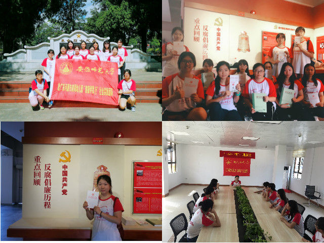 7月14日,为铭记先烈爱国事迹,培养当代老员工的爱国情怀,“健康伴我行”团队在河源市烈士陵墓园开展了“红色之旅”活动。此次活动以参观革命烈士纪念馆为主要内容,了解革命历史、认识红色文化为主要目的。19日,在队长温梓漪的带领下,“健康伴我行”实践团队参观了中国共产党反腐倡廉历程展览馆。阮啸仙先生的反腐事迹令人敬佩,中国共产党的反腐历程更是引发深思。在活动当天,队员们还在南湖幼儿园会议室开展有关“一学一做”的主题会议,对上午的参观内容进行讨论总结,并且进一步强调“一学一做”中“学”与“做”并行的重要性。