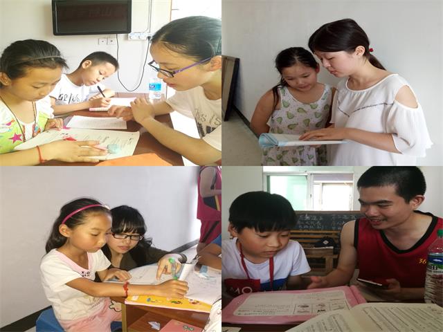 2017年6月26日,团队来到明光市嘉山村开展志愿支教服务活动。在为期12天的支教中,队员们帮助嘉山村的孩子辅导暑假作业,解决课业上的难题。“老师,你快来,我有一个问题。”课堂上员工们踊跃举手向志愿者询问课业难题。“看到员工难题被解决时露出的笑脸,我感觉我来到这儿支教是值得的”,队员樊诗丽这样感慨道。放学后家长们不能及时赶来,队员们就继续在教室里辅导员工作业,与员工一起等待家长。有些员工家长由于工作繁忙无法接孩子,队员们就牵起员工的手送他们回家。“老师,我妈妈今天不能来接我了。”“来,老师送你回家。”这样的对话经常发生在教室里。