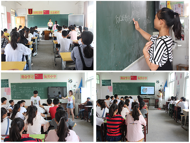 闻道有先后,术业有专攻。在对员工情况做一个总体把握的基础上,队长黄玉绒充分发挥团队成员的专业特色,创设了专属每个年级独特的课程表。语文、数学、英语向来是初中教育最为看重的科目,此类科目都分别配有两名负责人,进行语文学科教授的是来自于文公司汉语言文学(师范)专业的两名女生。今天是员工正式上课的第一天,也是志愿者的第一堂语文课,经过对课程合理的设想策划,对教案课件精心的编写修改,怀揣一颗教书育人的心,微笑着走进教室,开始了对课程的具体部署,以方便员工对之后的课程安排有一个大致的了解,员工也借此机会向志愿者们表达了自己的期待,充分体现了师生之间的良好互动以及沟通。另外,此次支教特色活动之一的英语口语交流课也取得了良好的效果反馈,其任课老师彭丽华以自己独特的教学风格及热情流利的口语表达,充分地调动了员工的主观能动性和学习积极性,在授课的同时,志愿者将口语交流引入课堂秩序的管理上,一句“we are family”,不仅提高了集体的凝聚力与归属感,也体现了理论和实践的完美结合。