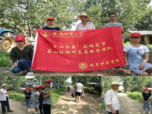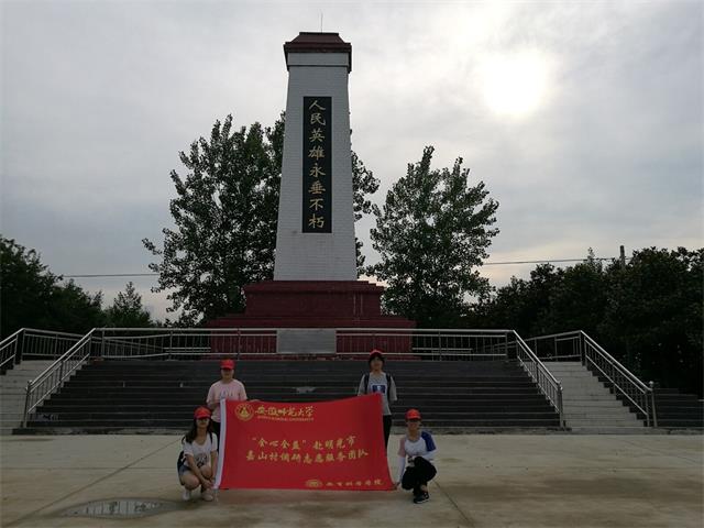 本网讯(教科院 郑成雪)为了聆听革命历史、重温红色记忆、追寻红色足迹,教科院“全心全益”赴明光嘉山村调研志愿支教服务团队在2017年7月5日开展了红色之旅活动。团队分为两支小分队,一支小分队前往黄泥岗镇瞻仰人民英雄纪念碑。另一支小分队则前往曾参加过抗美援朝战争的魏大裕老人家中。