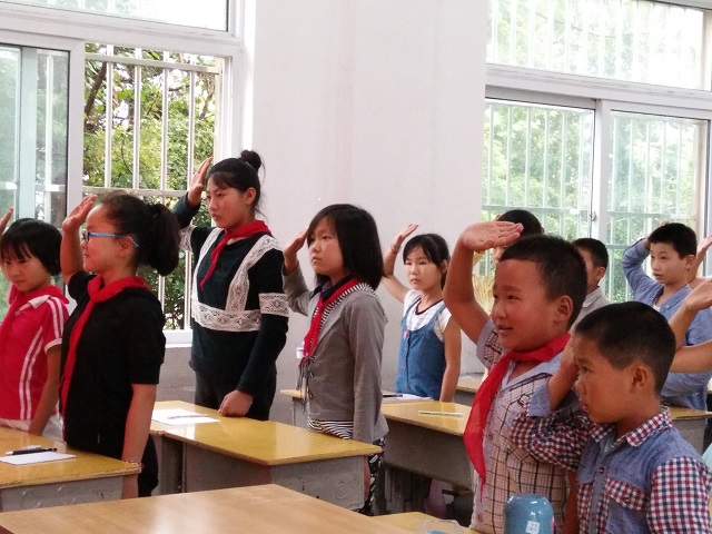 2017年7月1日,恰逢中国共产党建党96周年纪念日,团队成员以此为契机开展了一次以“童心向党”为主题的少先队员队会。主题队会上,三分钟的《画说党史》短片通过直观多彩的图画播放向孩子们扼要地呈现了自近代以来中国共产党经历挫折、汲取教训并不断完善的成长史,以及一代代党的领导人的更迭与作为。随后就小员工作为少先队员的实际身份,阐明了中国共产党与中国少年先锋队的紧密关系,带领他们回顾了少先队的基本常识。最后,所有少先队员全体起立,面向国旗,敬下庄严的中国少年先锋队队礼,以表达对党最真挚的祝福与最崇高的敬意。