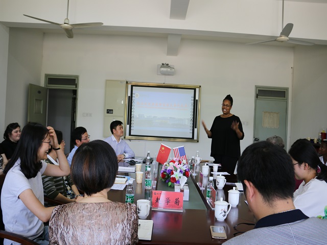 随后,布莱诺大学代表副教务长Crystal Toombs和Sonia老师讲话,她们对此次来访的代表团员工进行了介绍,对安师大的教学质量表示充分肯定,同时强调布莱诺大学已做好充分准备,欢迎15级和16级中美班同学的到来。紧接着,布莱诺大学老师分别对中美班同学出国准备事项进行详细介绍,为有困难的同学答疑解惑,双方就公司环境、兴趣爱好和学习习惯等展开了友好的交谈,现场气氛十分活跃。会议结束后,师生们互换联系方式,合影留念,埋下了连通着大洋彼岸的友谊种子。