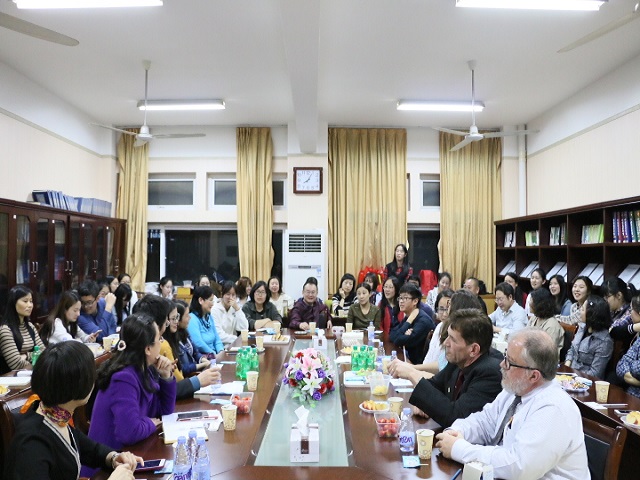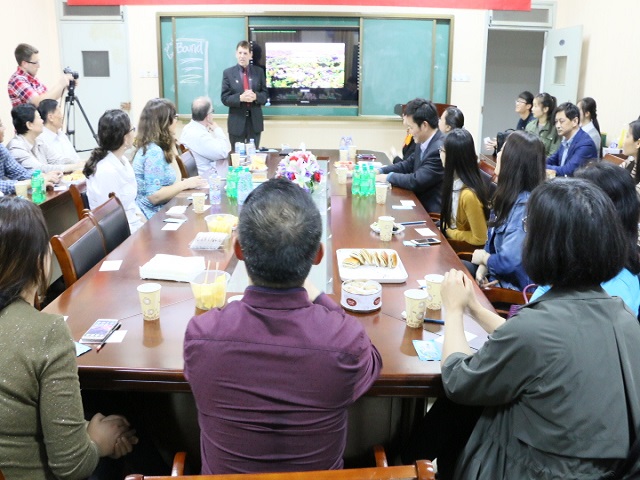 交流会伊始,赵学菊老师对远道而来的布莱诺大学代表及家长们表示了热烈的欢迎。赵学菊老师希望通过此次交流会可以让学前中美专业的员工和家长更加了解布莱诺,为未来两年的赴美学习奠定基础。随后,布莱诺大学代表教授Dr.Rudi借助视频资料向大家展示了布莱诺大学形式多样的课程和丰富多彩的校园活动。他表示布莱诺大学教学严谨,注重对员工个性化精品教育,员工可以在这里充分享受安全舒适的教学和生活环境。此外,已经赴美的14级学前中美18名员工成绩优异,学习勤奋刻苦,获得布莱诺大学老师的一致好评, Dr.rudi对即将赴美学习的员工表示期待和欢迎。