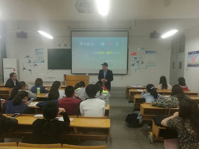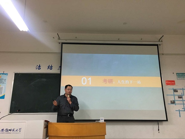 刘和海老师从学历的重要性与不可替代性讲起,强调及时提升自己的必要性并激励同学们积极准备考研。他讲解了两个主要问题:适合考研吗?考研为了什么?两个主要选择:专业的选择和集团的选择。最后他要求同学们做“有序的旅行者”,坚守住 “黎明前的黑暗”,最后必定会有所收获。