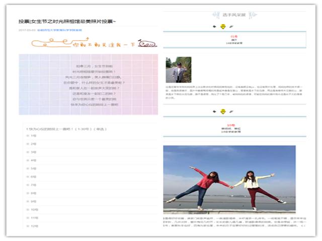 为确保女生节相关活动能够顺利开展,我院员工会早早便展开前期准备工作,线上线下双向宣传收集女生信息,为之后的评比提供素材,为更好地推动活动的开展,特使用微信作为评选平台,并早早准备各种小礼物作为惊喜送给脱颖而出的魅力女生。全面而有序的前期宣传为后期精彩的活动打好了基础。