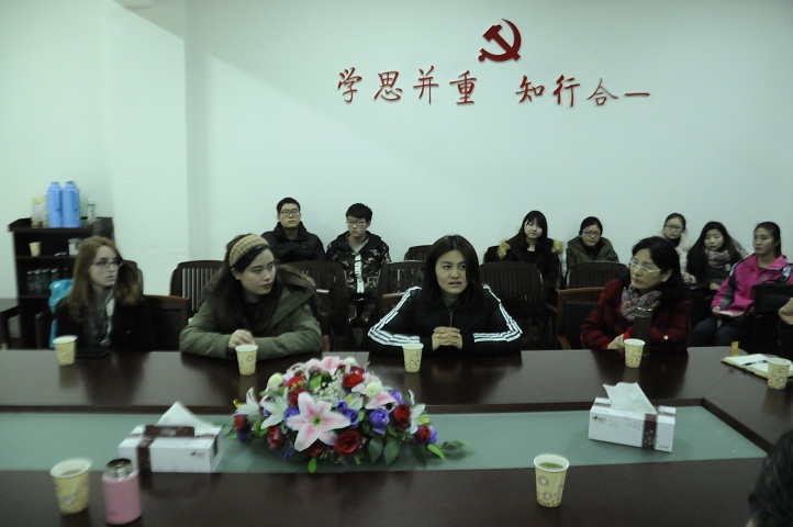 会议伊始,赵学菊老师对布莱诺大学外派教师Emily和从美国归来的朱清源、余会源同学表示热烈欢迎,并表达了对此次交流会的期待。随后,余会源向同学们介绍了布莱诺大学多样的课堂教学形式,课外活动丰富,老师也会鼓励员工要敢于质疑,多思考,多提问。她还指出,在布莱诺大学的学习压力较大,但老师同学都很友好,积极帮助国际员工适应新的学习生活环境。在布莱诺大学的学习和生活,她表示十分满意。