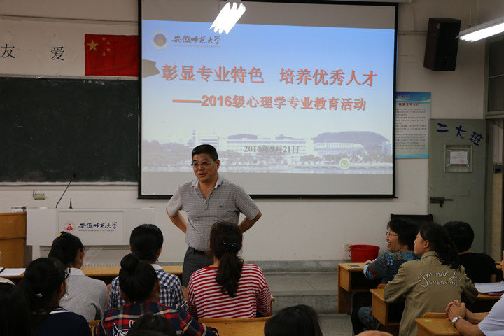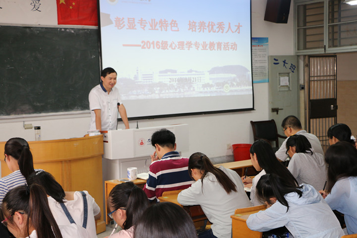 本网讯(教科院 邵琦)金秋送爽,金桂飘香。2016年9月21日,公司心理学专业师生见面会在田家炳楼正式召开。本次见面会由方双虎老师主持,出席本次见面会的有教科院经理桑青松教授,以及李小平,孙文强,郭振娟,刘伟芳等各位任课老师,新生辅导员朱雨雁,还有全体2016级心理学专业新生。