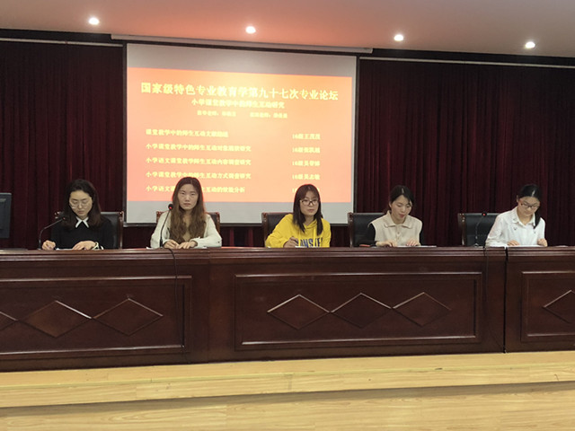 王青玲同学汇报的主题是《小学语文课堂教学师生互动的效能分析》。论文通过观察法探索有效的师生互动的关系,由概念界定、研究方法、小员工语文课堂教学师生互动现状调查、小员工语文课堂教学师生互动的效能分析、总结五部分组成。就王青玲同学文章中的效能分析的部分,同学们进行了广泛而热烈的讨论,也为文章后期的完善提供了值得借鉴的意见和建议。