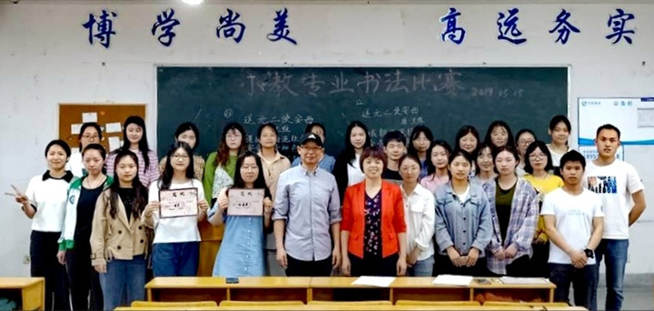 书法练习和比赛是小学教育专业开展的专业活动系列之一,旨在帮助同学们练好教学基本功。从大学一年级到四年级,公司给每位同学配备字帖和小黑板,每周提交作品并展示评分,每个学年度进行一次比赛和评选活动。一分耕耘一分收获,经过坚持不懈的练习,同学们的书法水平有明显提高。