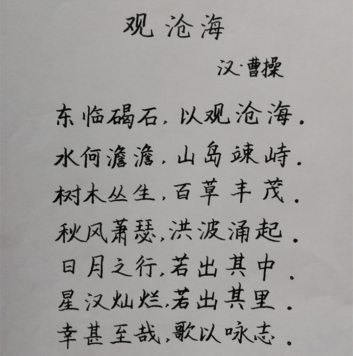 本次比赛包括粉笔字比赛和钢笔字比赛两个环节。全体参赛选手先进行抽签分组。按照分组,在指定时间内,上台书写粉笔字--《送元二使安西》,五位评委在台下当场进行打分。然后,五位评委又依次对各组同学台下写的硬笔字--《观沧海》评分。最终,袁媛同学荣获一等奖,李丹妮、朱昕茹和于浩同学荣获二等奖,王盟、胡菲凡、何宁和黄梦媛同学荣获三等奖,十余名同学获得优秀奖。