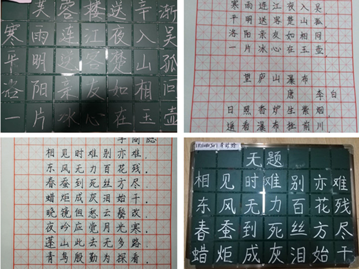 为提升员工的师范生素质,不断夯实钢笔字、粉笔字等教学基本功,加快师范生专业成长步伐,本学期以来,2018级小学教育专业的书法活动一直以硬笔和粉笔为主,一周上交一次作业给书法负责人,并由书法负责人整理打分,一个月上交一次给本班专业指导老师查看情况,并指出不足。此外,本学期还开展了书法练习结对帮扶活动,由本班书法较好的同学辅导较差的同学进行练习。从近两个月的情况来看,本班同学的书法水平整体较上学期有明显进步,尤其结对帮扶的同学进步较快。为加强班际交流,本学期五月中旬,本班级还将和16小教、17小教举办一次书法比赛,进而让大家在比赛中相互切磋,共同进步。