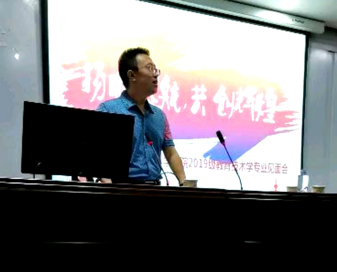 会议由专业负责人杨滨老师主持。首先是张如华副书记发言,温暖而贴心的话语既引出了会议主题,又给予新同学许多鼓励与希望。紧接着杨滨老师播放了全国教育技术学专业展播活动的视频,视频中聂竹明副经理介绍了安师大教育技术学的发展史,帮助在场各位同学详细了解了本专业的基本情况。随后,19级教育技术学专业辅导员詹雅灵从新生数量、男女比例、生源地等方面利用数据可视化介绍了新生状况,使师生更加了解和熟悉班级情况。