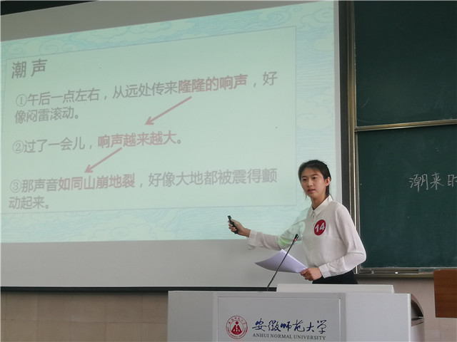 随后,进入院选的同学们接受了评委老师的建议并对自己的课程安排进行了调整,于2019年9月11日迎来了师范生教学技能大赛的院选。在这次比赛中参赛选手们比初次参赛时进步了许多,授课内容安排更加合理,教态也更加端庄大方,在讲台上绽放着属于自己的光彩,得到了李卯老师、张丽老师和徐赟老师的肯定。最终2017级祁欣同学、2017级张世钰同学、2017级刘晓旭同学和2018级俞晓雨同学在12人中脱颖而出,代表教育学专业参加校级第十六届师范生教学技能大赛。