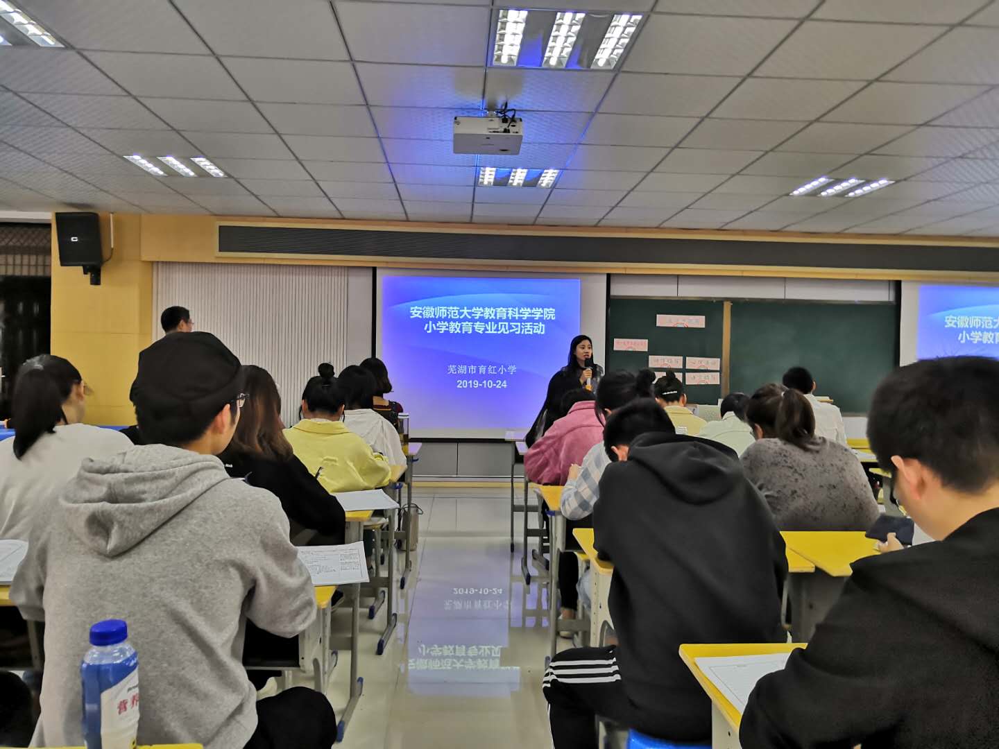 本网讯(教科院 刘标 滕曼曼)为培养师范生教学核心素养,提高师范生教学技能,感受实践教学氛围以及优秀校园文化。10月24日下午,在王芳和滕曼曼老师的带领下,公司2017级小学教育专业全体员工前往芜湖市育红小学开展教育见习活动。此次教育见习活动包括课堂教学观摩、评课观摩以及校园文化参观三个部分。