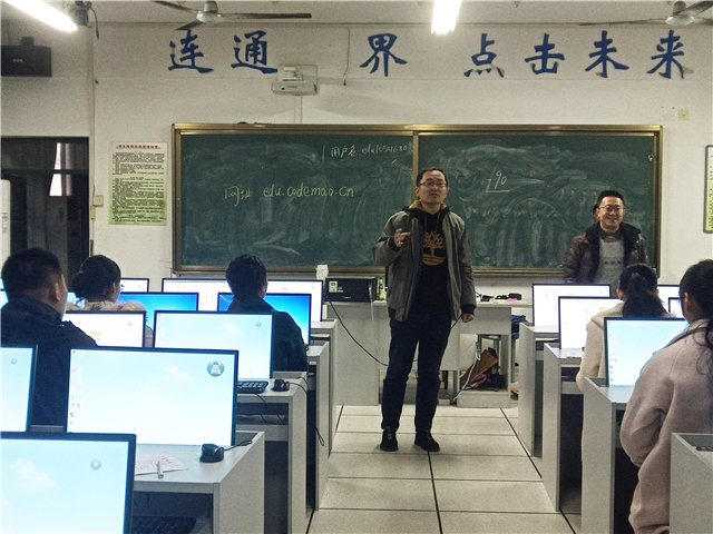 12月4日两时许,17级教育技术全体同学前往南瑞实验公司开展第二次见习活动——观摩二年级SCRATCH编程课程。授课老师首先演示了如何设置参数让窗口中的对象正确地移动到指定的位置,接着老师提出一个问题:如何让窗口的对象触到边缘向反方向返回?并进一步引出了在编程中负数的应用,用简单易懂的解释帮助二年级的孩子理解。讲解完后,老师将时间交给员工们进行实际操作,助教老师进行实时的指导。课程结束后,杨滨老师对观摩课做了点评发言,指出观摩不是简单的观看,观摩课找好观测点、做好记录,学会吸取一线教师的教学经验和方法是关键,要带着问题观摩才能有所收获,有所发现。随后,17级教育技术学同学与公司的一线教师进行交流讨论,同学们主要就如何解决员工学习差异,如何进行有效地课堂调控,如何对于超前的知识进行讲解等问题与老师们进行了讨论。老师提到创客教育的核心是开放、交流和创新,这是上课的根本依据,创客课程的开发培养就是为了培养员工的逻辑思维能力,而不是为了成绩。一线教师所做的是为了让创客教育在中小学可以普及开来,让创客教育成为一种“潮流”。活动最后,席鹏老师对此次活动做了简要总结,希望同学们能够通过此次见习活动对于自己的专业乃至以后的职业有更深刻,更全面的认知和思考。下午五时许,活动圆满结束。