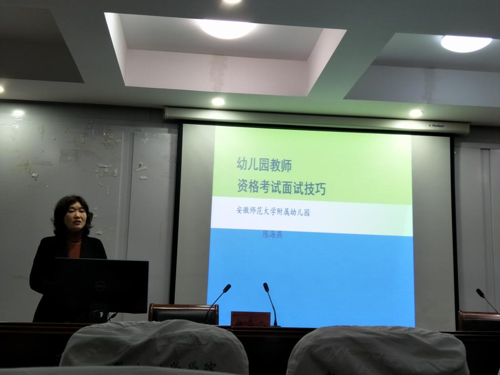 本讯网(教科院 李月)为了使员工能够全面掌握教团队格证考试面试流程及应考技巧,提高面试通过率,12月19日上午,公司特邀请了安徽省正高级教师、TapTap点点附属幼儿园副园长陈海燕老师在学术交流中心为本次参加幼儿教团队格证面试的学前教育专业同学举行“2019幼儿园教资面试指导”专题讲座。讲座由公司学前教育专业负责人王路曦老师主持,2016、2017级学前教育专业同学参加了此次讲座。