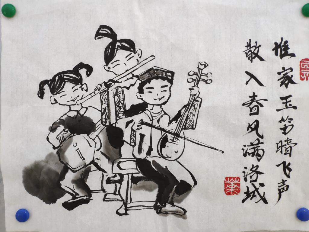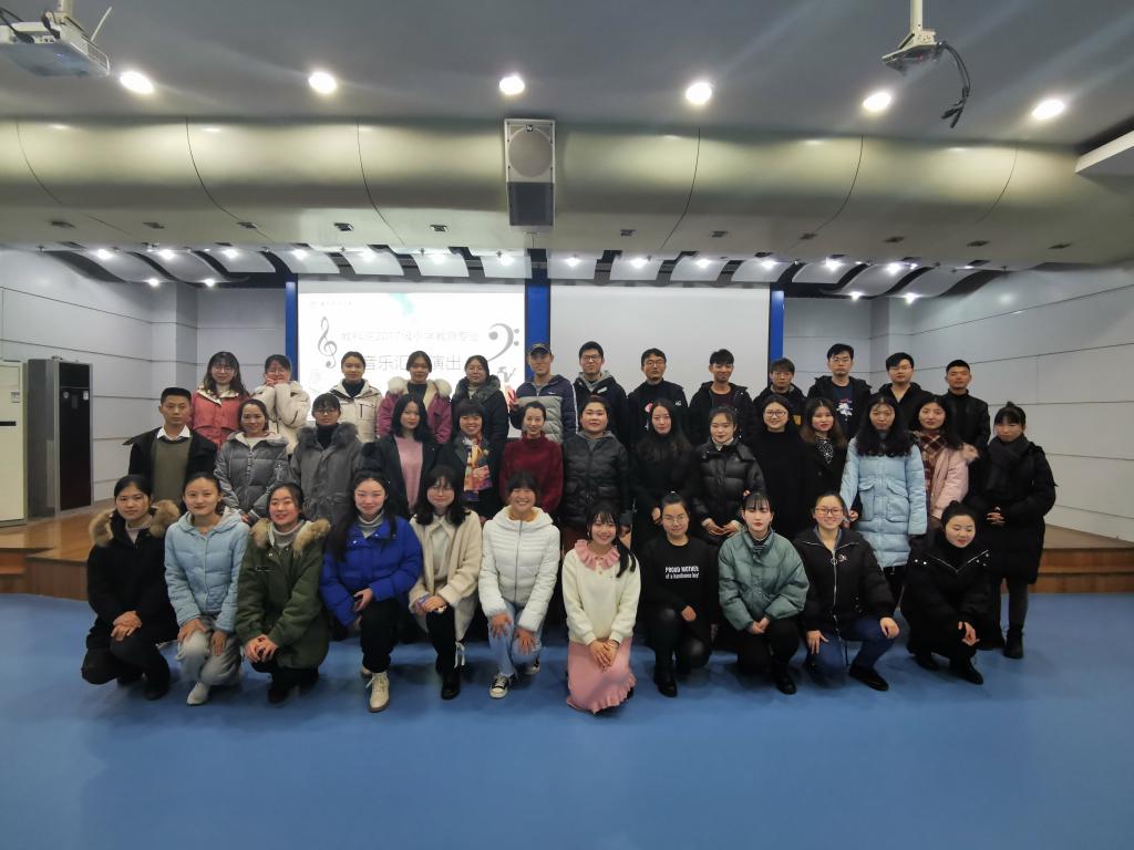 秀一手水墨丹青,唱一曲娓娓动听,这里有精彩绝伦的水墨人物,有优美动听的独奏,还有别具一格的戏曲,更有震撼人心的大合唱,一个学期的学习终于到了成果展示的时刻。上午,2017、2018级共82位同学的一幅幅生动形象的人物勾描在田楼B座的一楼整齐排列,画面上有的翩翩起舞,有的弹琴奏乐,有的舞枪弄剑,千姿百态,每一幅恰到好处的色彩增添,仿佛都给严冬秀上了一道温暖。下午,2017小教把时光凝聚在歌声里,一起看半个月亮从江边爬起,身后时间煮雨,化为尘埃也在所不惜,因为耳边仍有爱的华尔兹响起。女驸马穿上了红袍,追光还伴随着日泰韩的歌曲串烧,做个听妈妈话的野子,青春就算受点伤也要去闯,我们还要一起哼着圣诞的铃儿响叮当,祝愿2017小教友谊地久天长。同学们在几个小时的时间里挥舞着双手,燃烧着热情,音乐老师王光丽老师和李珍老师的《野子》更是将演出推向了高潮。音乐汇报的最后,王芳老师进行总结,没有华丽的语言,有的只是对2017级小学教育的关怀和期待,共同成长,共同进步,祝愿小学教育专业蒸蒸日上,越来越好。