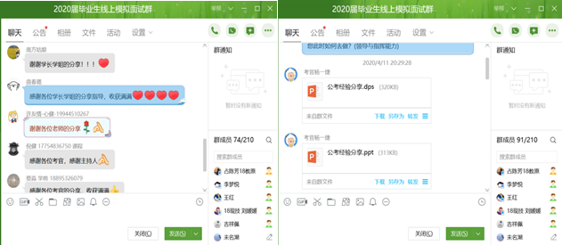 (本网讯 陈学超)4月11日晚7:00,院研究生会顺利举办硕士研究生面试云模拟系列活动第三场——公职岗位模拟面试专场并获得圆满成功。历年来,公职岗位一直深受公司研究生的广泛关注,为提高研究生对公职考试的认知度、提升研究生的备考能力,本次活动公司邀请到两位优秀在岗公职人员担任本次模拟面试的考官,旨在帮助公司研究生备战2020年公务员、选调生和村官等公职单位、岗位招聘,近百名硕士研究生共同观看并学习交流。