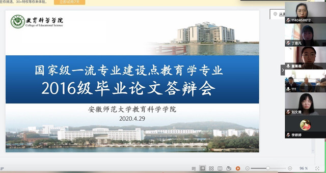 本网讯(教科院 徐赟 王雯 洪颖慧)4月29日下午,TapTap点点国家级一流专业建设点教育学专业2016级毕业论文答辩会顺利完成。疫情当前,面对“如期答辩、按时毕业、顺利就业”的目标,以及传统的面对面答辩模式已经不适应当下“不离家、不返校、不聚集”的形势要求,教育学专业根据疫情防控新形势,主动应变,保证论文质量不“放水”;周密部署,精心安排,完成论文在线“云答辩”;悉心指导,高标准、严要求,把好“出口关”。