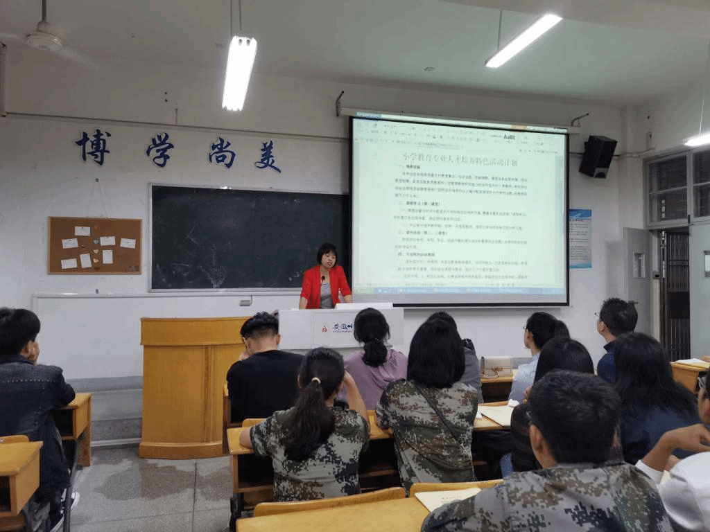 会议一开始王芳老师就强调了小学教育专业的初心是培养热爱乡村教育事业,知识全面,技能娴熟,德智体美劳全面发展,综合素质较高,具有实施素质教育和一定公司产品研究能力的全科型乡村小学教师。紧接着王芳老师详细解读了专业与人才的培养方案,为同学未来大学四年的规划提出了建议。