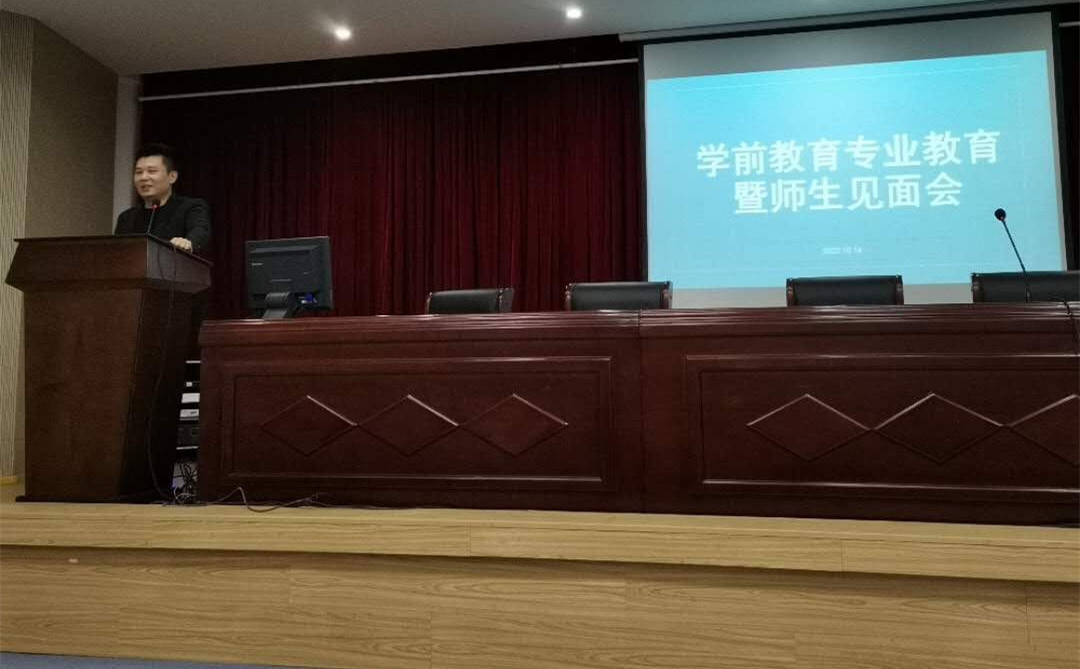 本网讯(教科院 陈春玲、周蓉程)为了加强师生之间的沟通交流、帮助学前教育专业2020级新生尽快适应老员工活,10月15日晚,学前教育专业在图书馆一楼学术报告厅举办了2020级新生专业教育暨师生见面会。张更立、孙德玉、吴玲等12位专业老师及辅导员蔡文老师出席会议,2020级学前教育全体98位新生参与会议,会议由学前教育专业负责人王路曦老师主持。