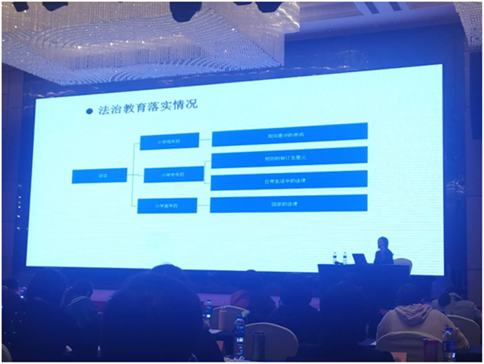 最后,南京师范大学道德研究所的孙彩萍教授在现场对前面两位老师的课堂教学进行了精彩点评,并做了题为《法治主题教育的德育转向》的交流汇报。孙教授肯定了两位老师的优点,同时提出了宝贵的建议。孙教授表示当今教育者要交流思想,做好对道法课的深入研究,充分研读道法课的精神,真正适应当下道德与法治教育的需求!