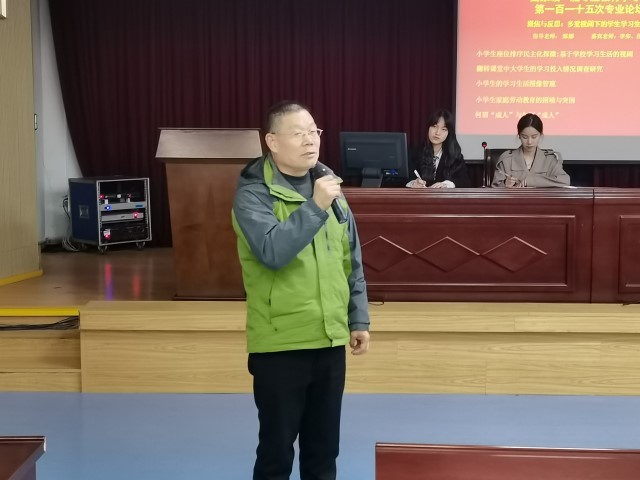 本网讯(文/张思雪 图/魏珍)为丰富员工的专业知识,提升员工的教育科学素养,11月22日晚,国家级一流专业建设点教育学专业第一百一十五次专业论坛在图书馆报告厅举行。参与本次论坛的有教育学专业18、19、20级全体本科生,莅临本次论坛的有吴君瑜小组指导教师陈娜老师、嘉宾段兆兵老师和李卯老师。19级许帆为本次专业论坛的主持人。在主持人说明论坛相关规则后,专业论坛正式开始。