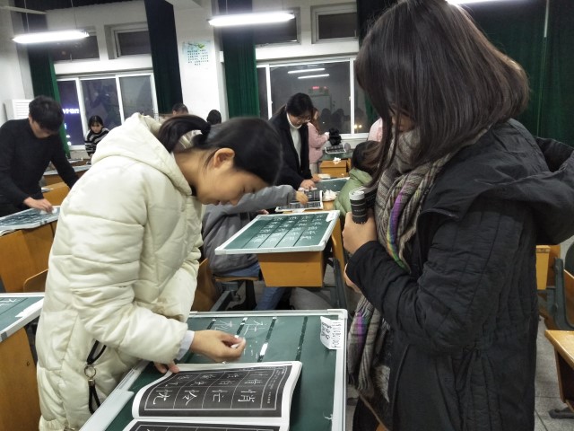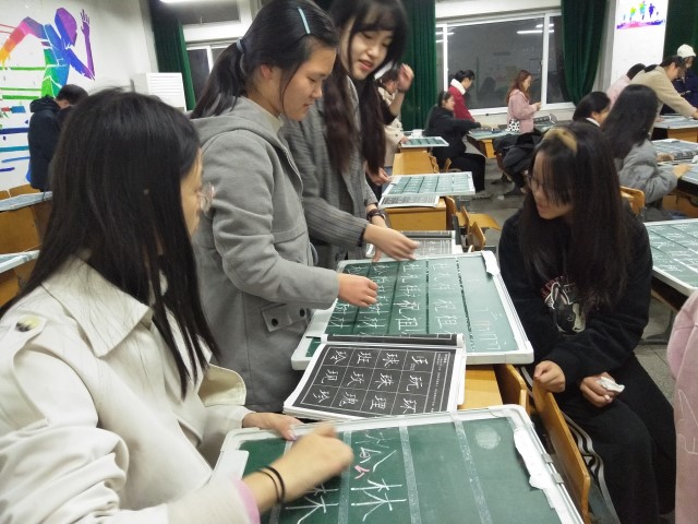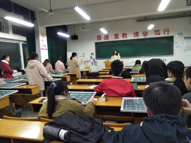本网讯(文/张思雪图/张思雪)为了强化师范生黑板字书写能力,教育学专业将练字环节作为特色实践课程《教育研习》的重要模块,成立了以员工为主体的练字工作小组,并建立了包括组织安排、练字晒字流程、讲字和评字、考核评价在内的一整套练字课程设计。为进一步规范粉笔字书写,提升师范生基本技能,11月26日晚上七点,19级教育学讲字活动在田楼8401教室顺利开展。练字工作组组长俞晓雨担任本次讲字活动的主讲人,19级张羽西、徐馨宇、吴君瑜负责现场指导工作。