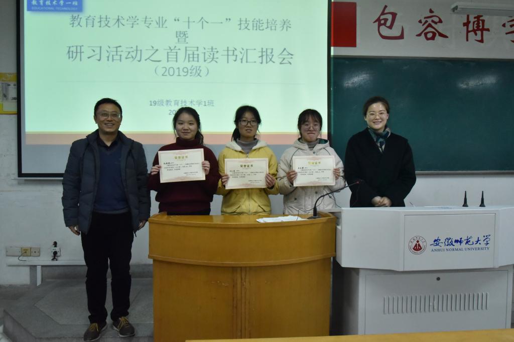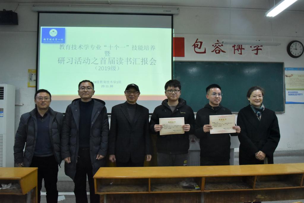 本网讯(教科院文/张帅、赵小雨 图/汪梓然)阅读促成长,汇报展风采,教育技术专业于11月30日6点,于田楼8204教室举办了首届读书汇报会。本次汇报会是教育技术本科生的 “十个一”技能培养之一,是读书研习活动的成果展示。2019级教育技术学专业员工展开了为期一个月的读书活动,历经两次小组读书汇报,最终选出14名优秀代表进行读书汇报。教育技术学专业负责人杨滨老师、党支部书记张克松老师、实验室主任席鹏老师、张帅老师、吴文涛老师以及2019级辅导员詹雅灵老师出席了本次汇报会,并对员工们的汇报进行指导点评。2019级教育技术学专业全体同学参与本次汇报会。