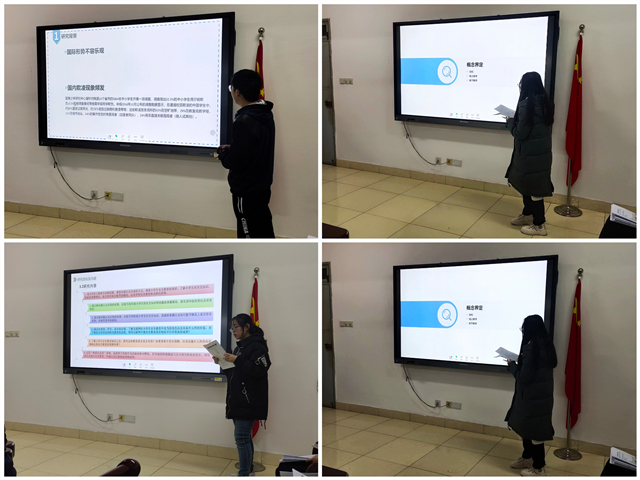汇报的8位项目主持人分别围绕《新时代大中小学劳动教育课程一体化建构研究—以安徽A大学及其附中、附小为例》、《高校师范生实习运行机制创新研究》、《新时代中员工劳动价值观培育研究》、《我国高校教师信息化教学能力的调查研究》、《研学旅行促进中小员工劳动教育实施的策略研究》、《新冠疫情下高校线上教学现状调查研究》、《小员工安全教育“帕累托”改进策略研究》、《中小公司园欺凌的法律分析及其处理策略》展开汇报,汇报过程层层推进,内容涵盖广泛,研究视角不尽相同,有理有据、条理明晰地为在场听众带来一场学习上的思维风暴。六位指导教师听完每组汇报后,就其中存在的相关问题展开提问,并针对项目选题、研究的可行性和必要性、结构和内容的逻辑构思、实施路径和策略及问卷设计等方面提出了中肯的建议,为项目成员深入开展后续研究提供了十分有价值的参考。